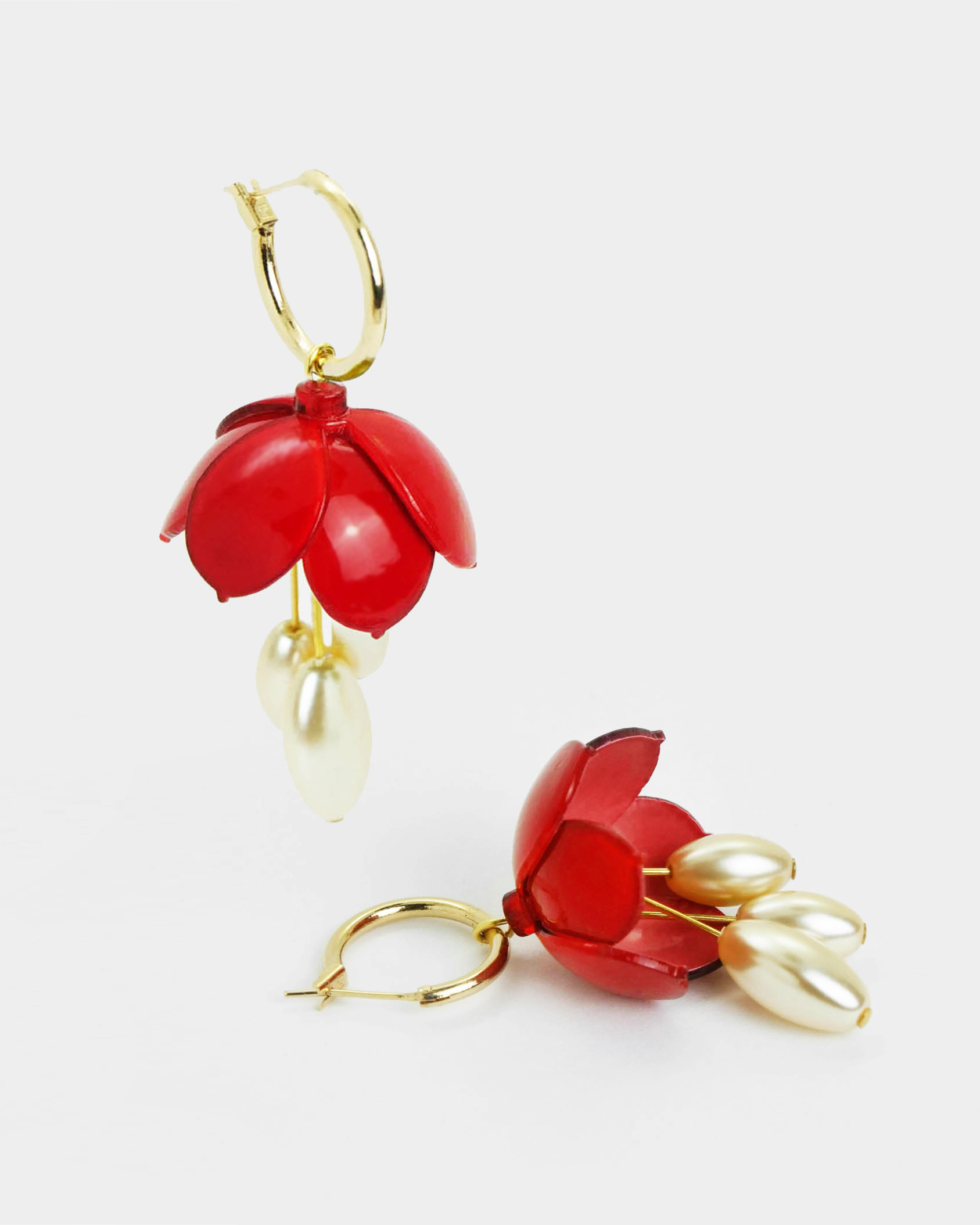 - Composition : résine, perles nacrées, créoles plaqué-or ou argent.