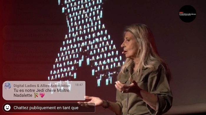 Connue pour son parler cash et bienveillant, Nadalette a connu un immense succès mondial avec son premier TEDx “Rien ne nous arrive par hasard” : il totalise aujourd’hui plus d’1 700 000 vues sur YouTube.