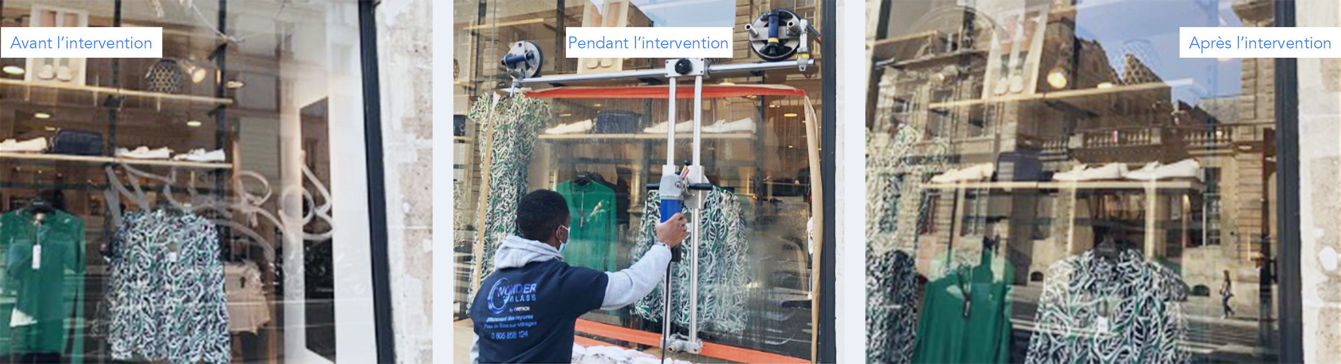 Le coût du remplacement d’une vitrine de commerce étant extrêmement cher, les assurances ne prennent souvent pas en charge ce genre de dégradation. C’est la raison pour laquelle nous avons développé une solution de réparation de vitre qui est économiquement bien plus intéressante que le remplacement dans la majorité des cas. Les vandales n’hésitent pas à utiliser des produits de plus en plus toxiques et dangereux pour marquer leur territoire.