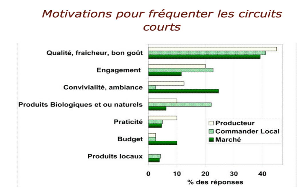 Selon une étude de l’INRAE, les motivations pour fréquenter les circuits-courts sont variées, liées à la notion de développement durable :