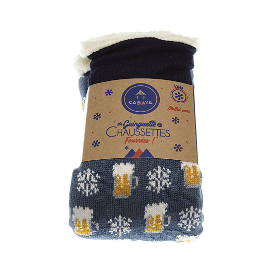 Chaussettes chaussons fourrées – motif bières et flocons