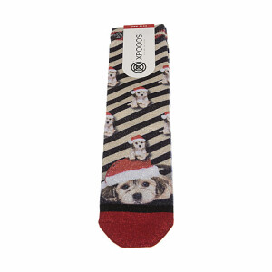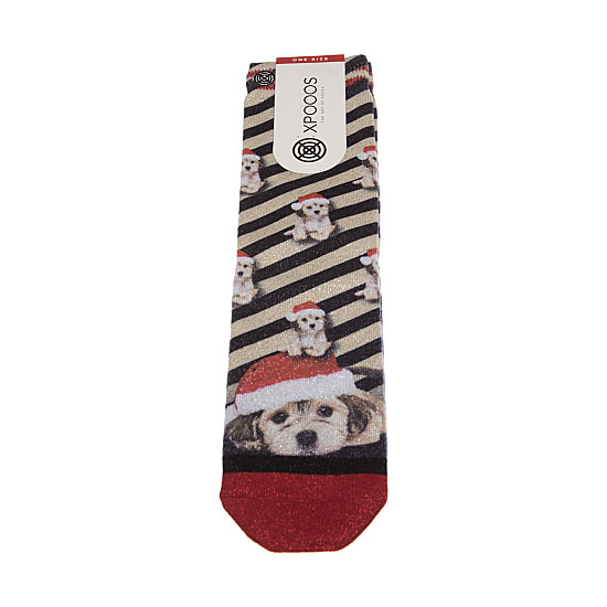 Chaussettes mi-hautes brillantes rayées motifs chiens de Noël
