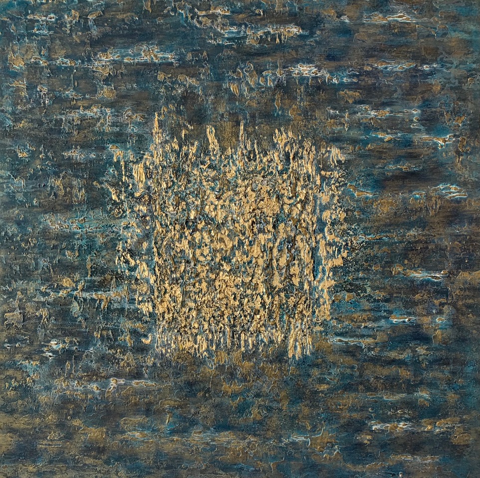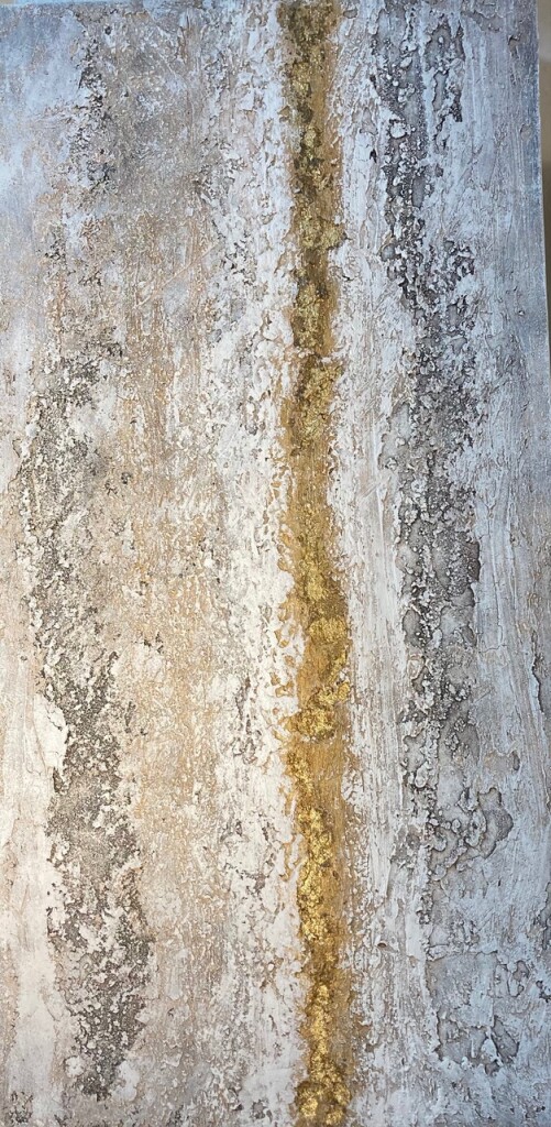 Silvy Garat. Pierre d’or. Acrylique, modeling paste, feuille à dorer