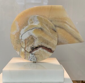Le sculpteur Maurizio Toffoletti, dont l’œuvre tout entière est inspirée par la passion pour les trésors enfouis de la Terre : pierre de Lecce, sa ville natale du Sud de l’Italie, marbres rares des carrières de Michel Ange à Carrare, onyx multicolores du Mexique et d’Argentine, les sculpte « en taille directe » dans la tradition de la Renaissance. Il les cisèle en volutes ou les érige en élans hiératiques, modèle leurs courbes comme autant de caresses. Certaines de ses sculptures jouent sur les transparences, laissent filtrer la lumière, ou sont entaillées en espaliers pour en faire des constructions sonores.