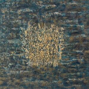 Comme un écho, les toiles de Silvy Garat, fondées sur un travail minutieux d’incisions ou de reliefs, des effets de matière et de texture, à la Fautrier, ajoutent un élément textile, avec quelques compositions sur lin et jouent entre nuances de bleus et art de la dorure, en harmonie avec la palette de Lilya Pavlovic Dear.
