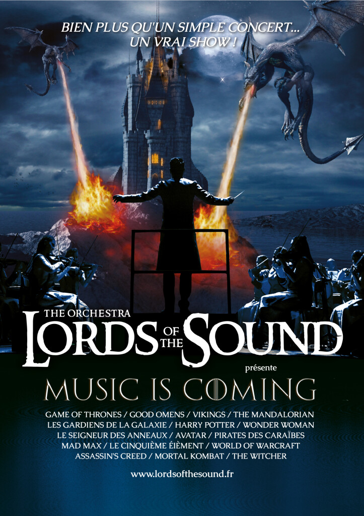 Pendant deux heures, Lords of the Sound jouera des extraits des bandes originales de films, séries et jeux vidéo, dont Game of Thrones, Vikings, Mandalorian, Guardians of the Galaxy, Wonder Woman, Le Seigneur des anneaux, Avatar, Mad Max, Pirates des caraïbes, Le 5eme élément, World of Warcraft, Assassin’s Creed, Mortal Kombat, et The Witcher : un voyage artistique et musical qui ravira les fans de séries, les cinéphiles, et les passionnés de jeux vidéo.