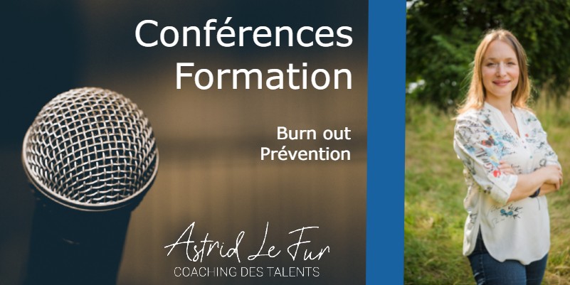 En parallèle du blog, Astrid Le Fur diffuse de l’information sur le burn out à travers des conférences gratuites lors d’événements, de salons ou en visio-conférences. Pour être informé des prochaines conférences, il suffit de s’inscrire à la newsletter du blog.