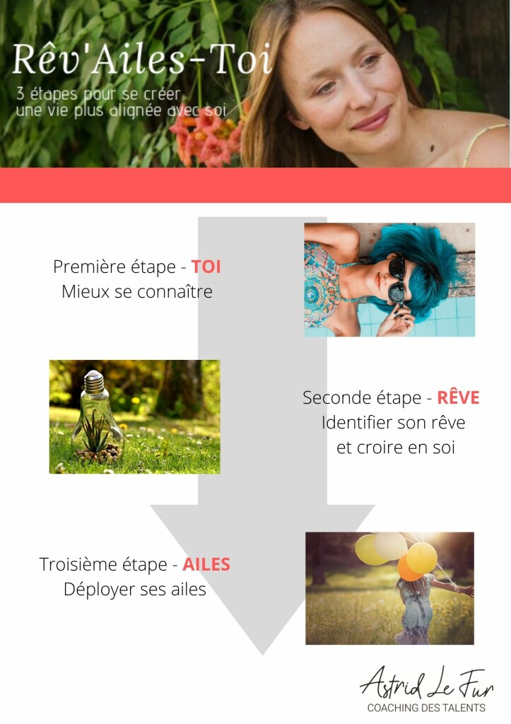 RÊVE : Identifier son Rêve et croire en soi. Astrid Le Fur accompagne ses clients à déterminer ce à quoi ils veulent contribuer. Bien souvent, le projet est déjà là, mais il est enfoui sous des peurs et des croyances qui le rendent inaccessible
