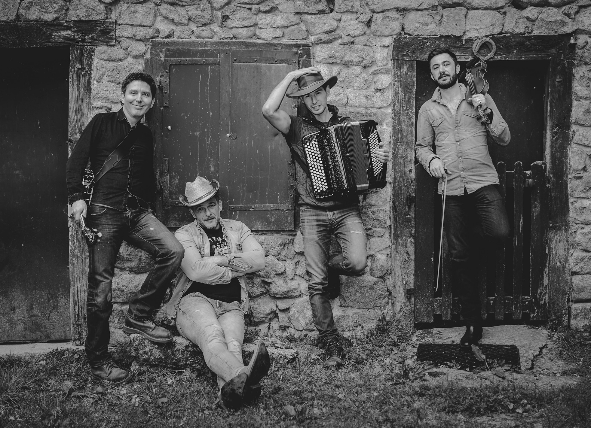 Sur scène, Wazoo délivre un cocktail détonnant d’énergie volcanique, avec Kévin Quicke au chant, Jeff Chalaffre à la guitare, au banjo et à la mandoline, Charlie au violon, et Greg à l’accordéon.