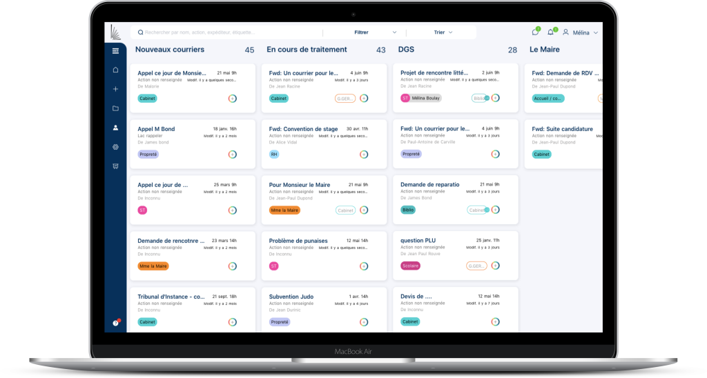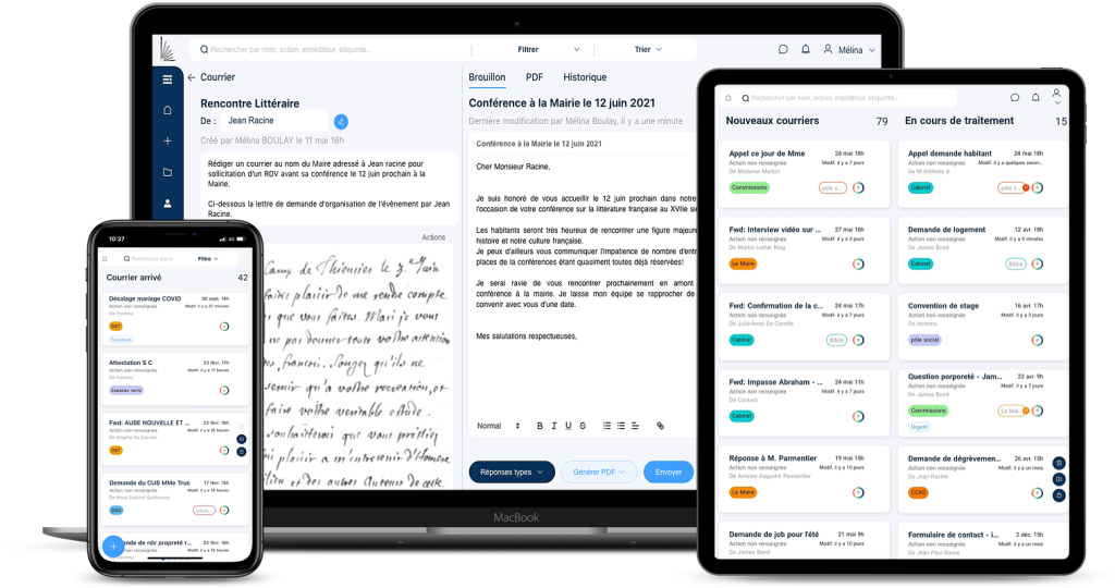De la réception de la demande à l’envoi de la réponse, l’ensemble du processus se déroule sur la même plateforme. Celle-ci a été inspirée par les meilleurs logiciels de bureautique et de gestion de projets, afin d’offrir une prise en main simple aux utilisateurs. Le Parapheur est développé en France, RGPD compatible.