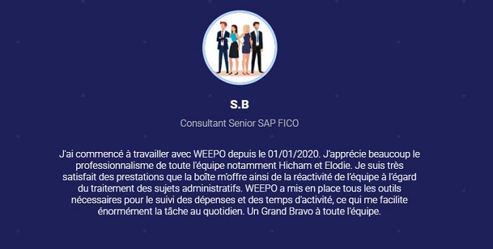 En quelques clics, les consultants peuvent ainsi contractualiser, facturer, ajouter des clients et développer leur business, … en mode “100% zen” puisque Weepo se charge de la gestion complète du côté administratif et offre un suivi de proximité tout au long de la mission.