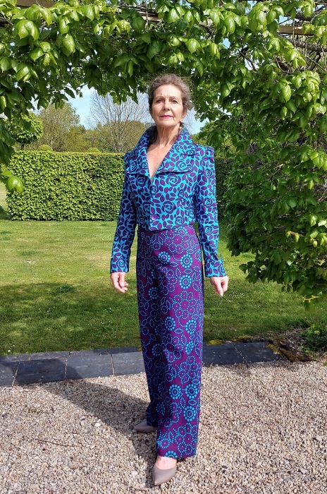 Cet élégant ensemble veste + pantalon assortis est fabriqué avec du khanga, tissu traditionnel kenyan en coton.