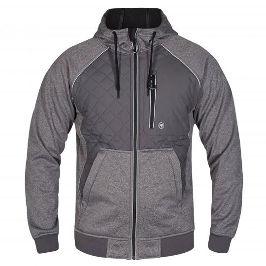 Cette veste de travail 1361 pour homme de la collection Xtreme de la marque Engel, possède un devant matelassé, une fermeture à glissière sur le devant, une capuche, des bas de vêtement et de poignet en bord-côte, des passepoils réfléchissants devant, derrière et sur la capuche, ainsi que deux poches latérales et une poche poitrine. 80,50 € HT.