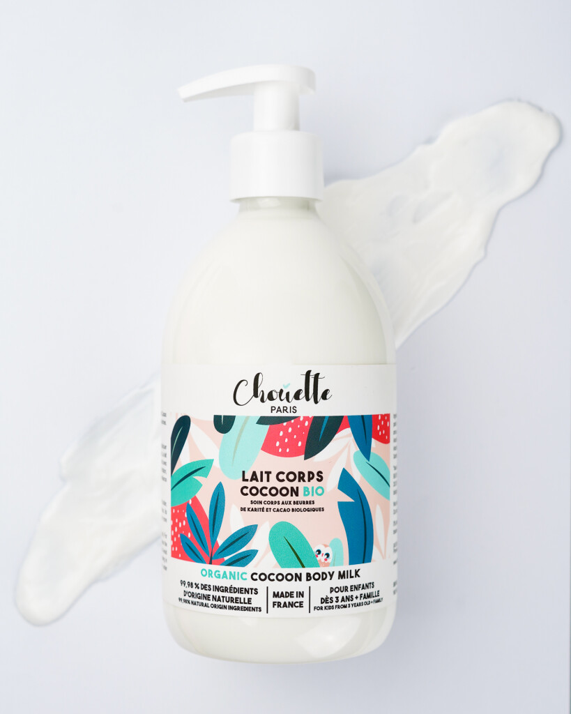 Les formules biologiques des produits Chouette Paris ne contiennent pas de molécules de synthèse comme le parabène, les conservateurs ou le phénoxyéthanol. La marque n’utilise que des actifs biologiques ou majoritairement naturels : beurre de karité et beurre de cacao bio, huile d’amande douce, ou encore eau de cassis bio.