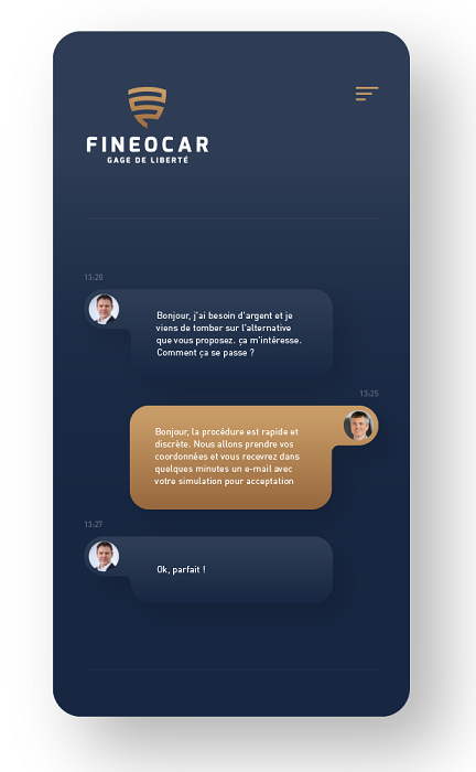 Aucun justificatif de salaire n’est demandé, ni même un extrait de casier judiciaire. Les personnes fichées à la Banque de France peuvent aussi utiliser les services de Fineocar, tout comme les banquiers, les chefs d’entreprise… Il s’agit d’une véritable alternative à la banque. De plus, la transaction n’est pas enregistrée.