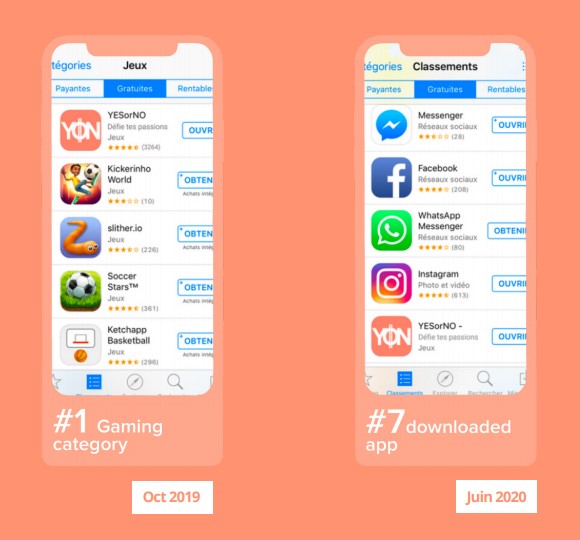 YESorNO a été testé dès 2019, en version Alpha, puis depuis 2020, en version Bêta, sur le marché français des applications, à l’aide d’une monnaie totalement virtuelle (pas de crypto, pas de valeur), sur diverses populations et divers sujets. L’objectif était clairement de tester et d’apprendre, afin de préparer l’arrivée de YESorNO dans la blockchain.