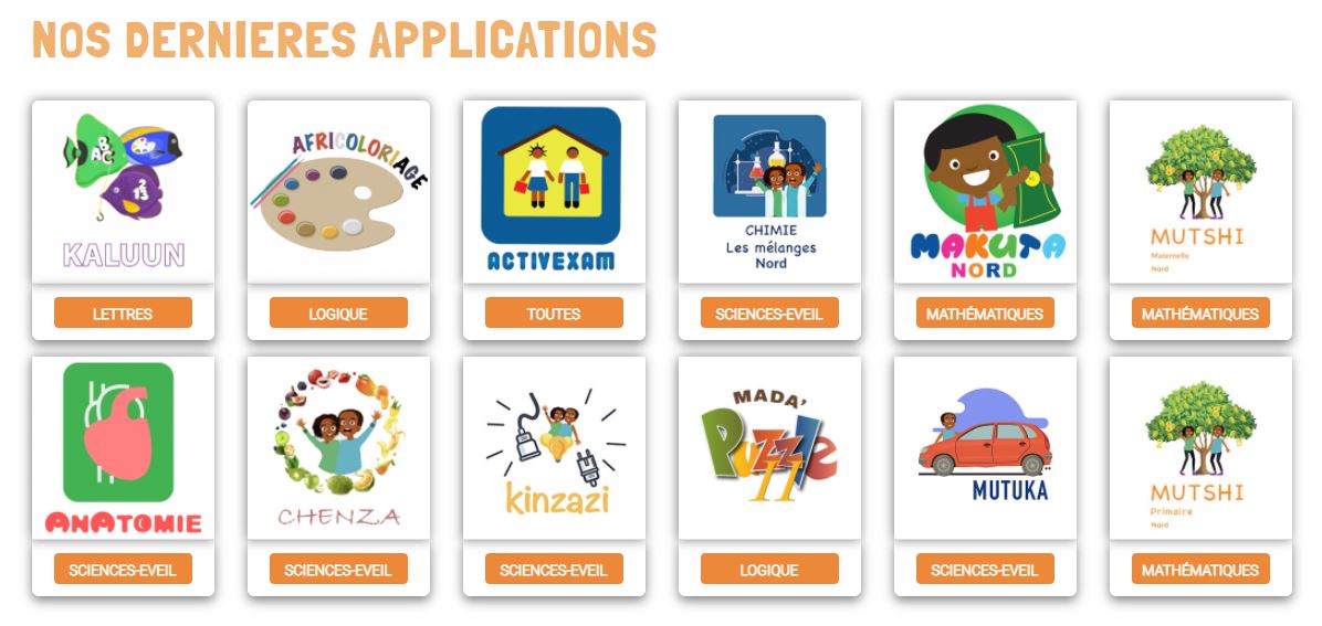 Dès octobre 2019, date de son lancement, les 1e applications ont été produites et présentées dans des écoles pilotes à Kinshasa.