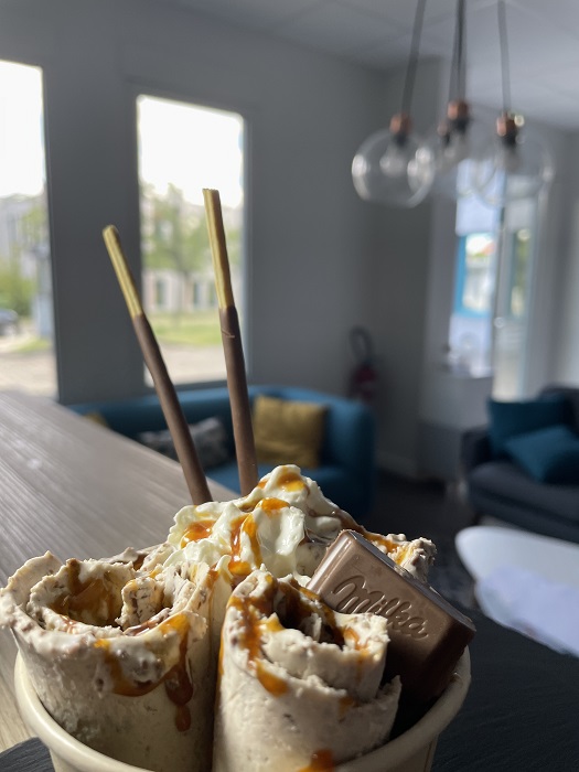Nul besoin d’additifs ou de conservateurs, la crème glacée est onctueuse et garde le croquant des ingrédients.