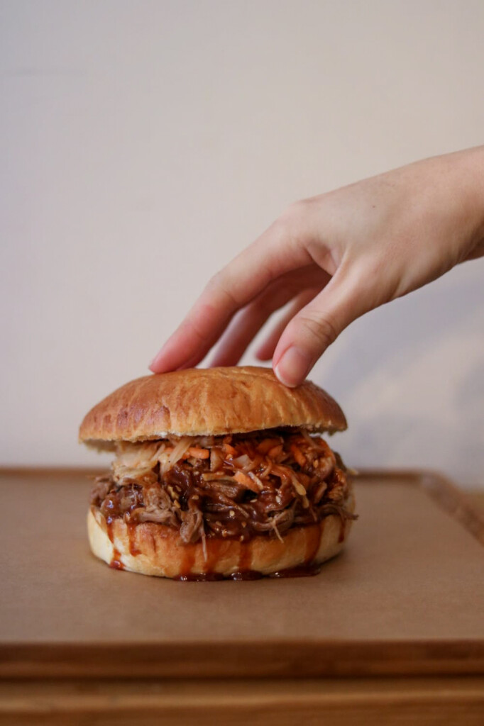 - Pulled beef : effiloché de bœuf au paprika, salade de chou chinois, et sauce barbecue maison ;