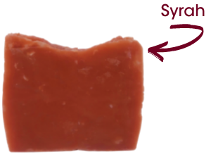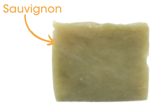 Pour la fabrication de ses savons à base de marc de raisin sont ajoutées des huiles végétales bio additionnées à de la soude. Cette préparation est mise en moule, et une fois refroidie, c’est la découpe des savons.