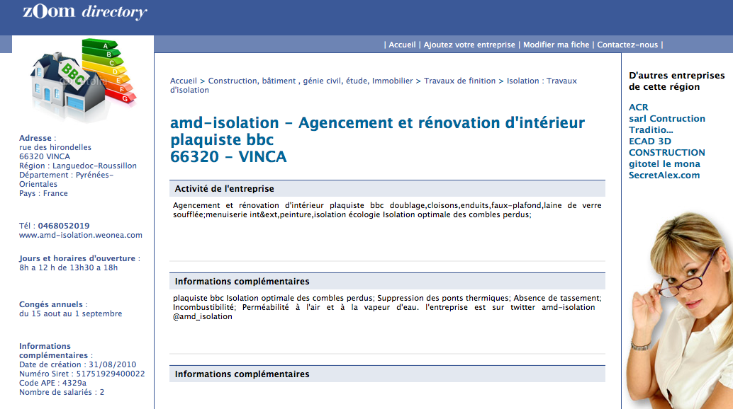 En plus d’offrir un espace de communication gratuit aux entreprises, Zoom Directory les guide pour que leur page soit visitée par des clients potentiels. Parce qu’un bon positionnement dans les moteurs de recherche est indispensable, Zoom Directory leur livre les règles élémentaires de référencement et les erreurs à éviter pour échapper aux sanctions des moteurs de recherche.