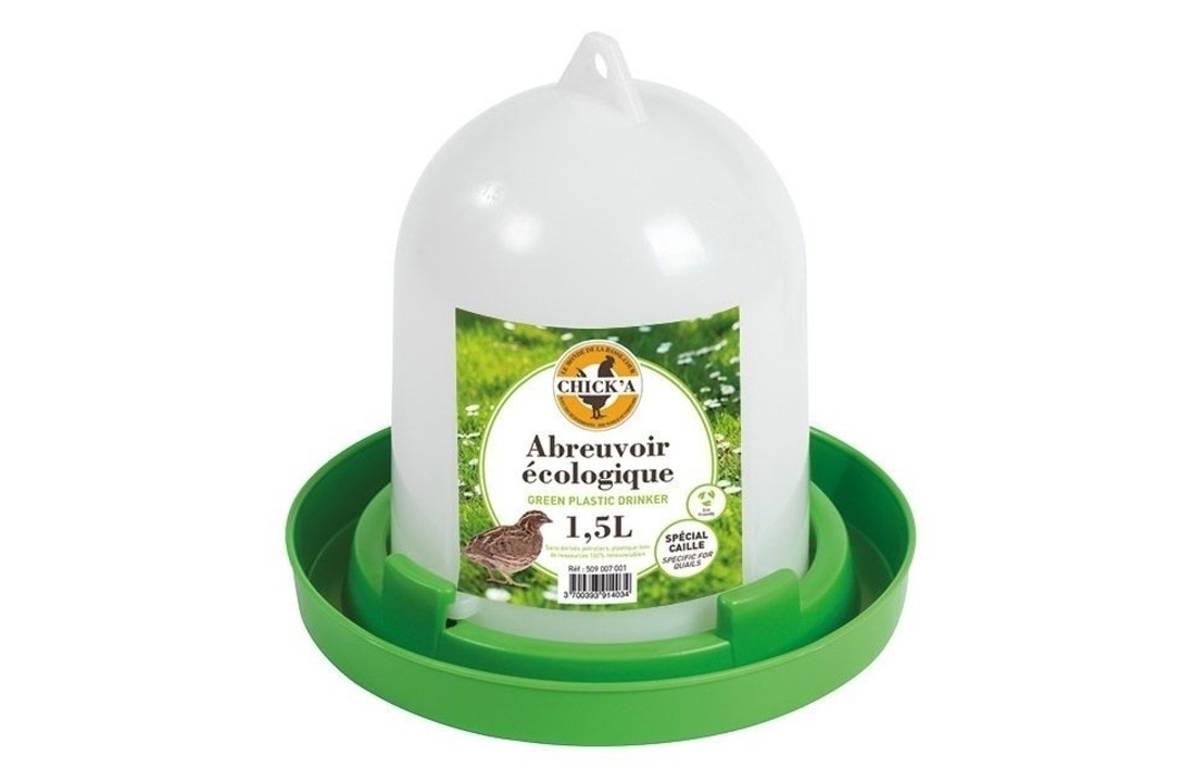 Cet abreuvoir pour cailles est fait de plastique résistant conçu à partir de canne à sucre et de betterave. Il est facile à nettoyer, et son socle peu élevé est adapté aux cailles.
