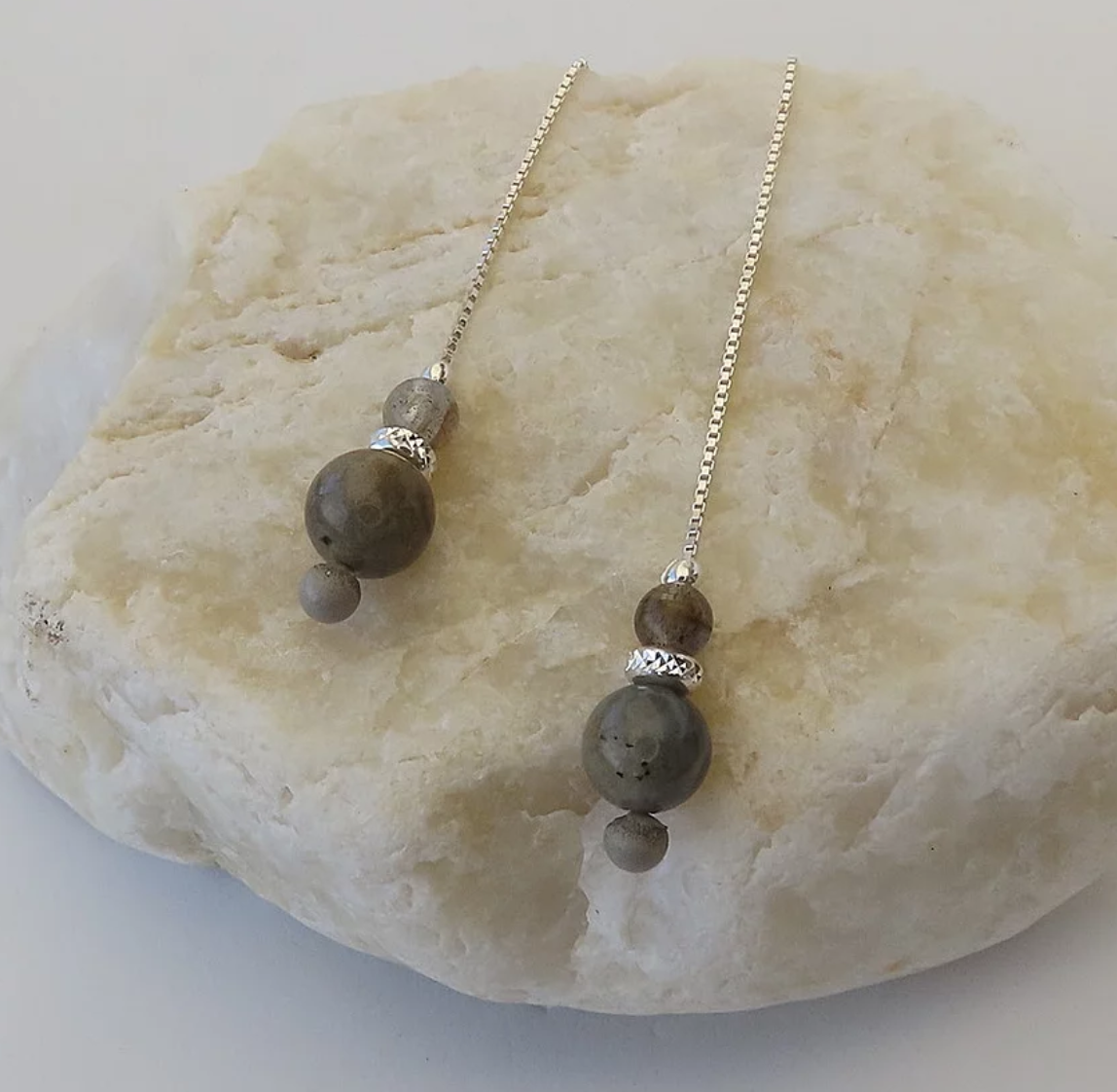Chaînes d’oreilles labradorite, argent 925 et béton