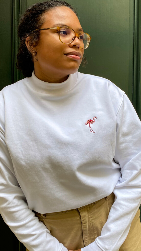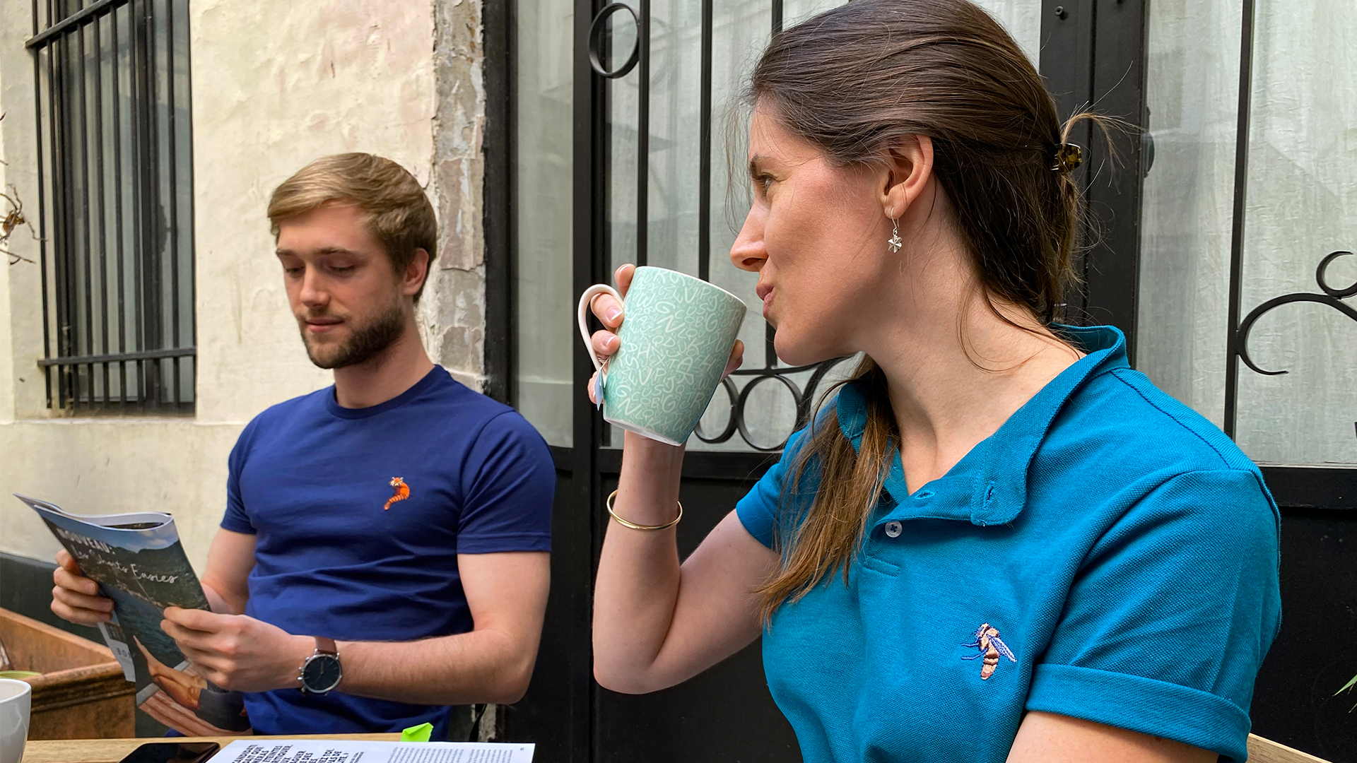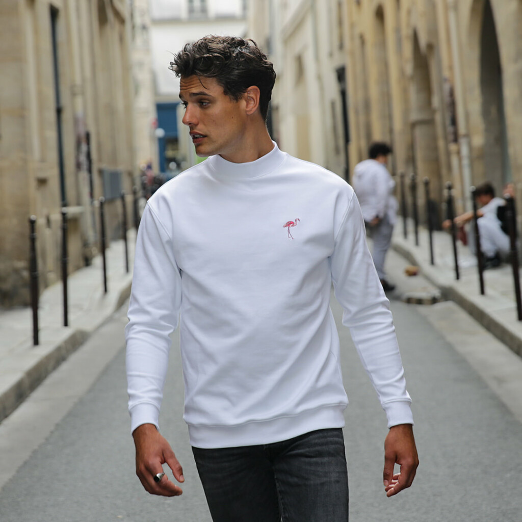 La collection ONE for us est composée de 6 modèles unisexes : 3 t-shirts, 2 polos à col mao et 1 sweatshirt. Cette approche minimaliste a à la fois pour objectif de satisfaire le maximum de client·es et de limiter la surproduction.