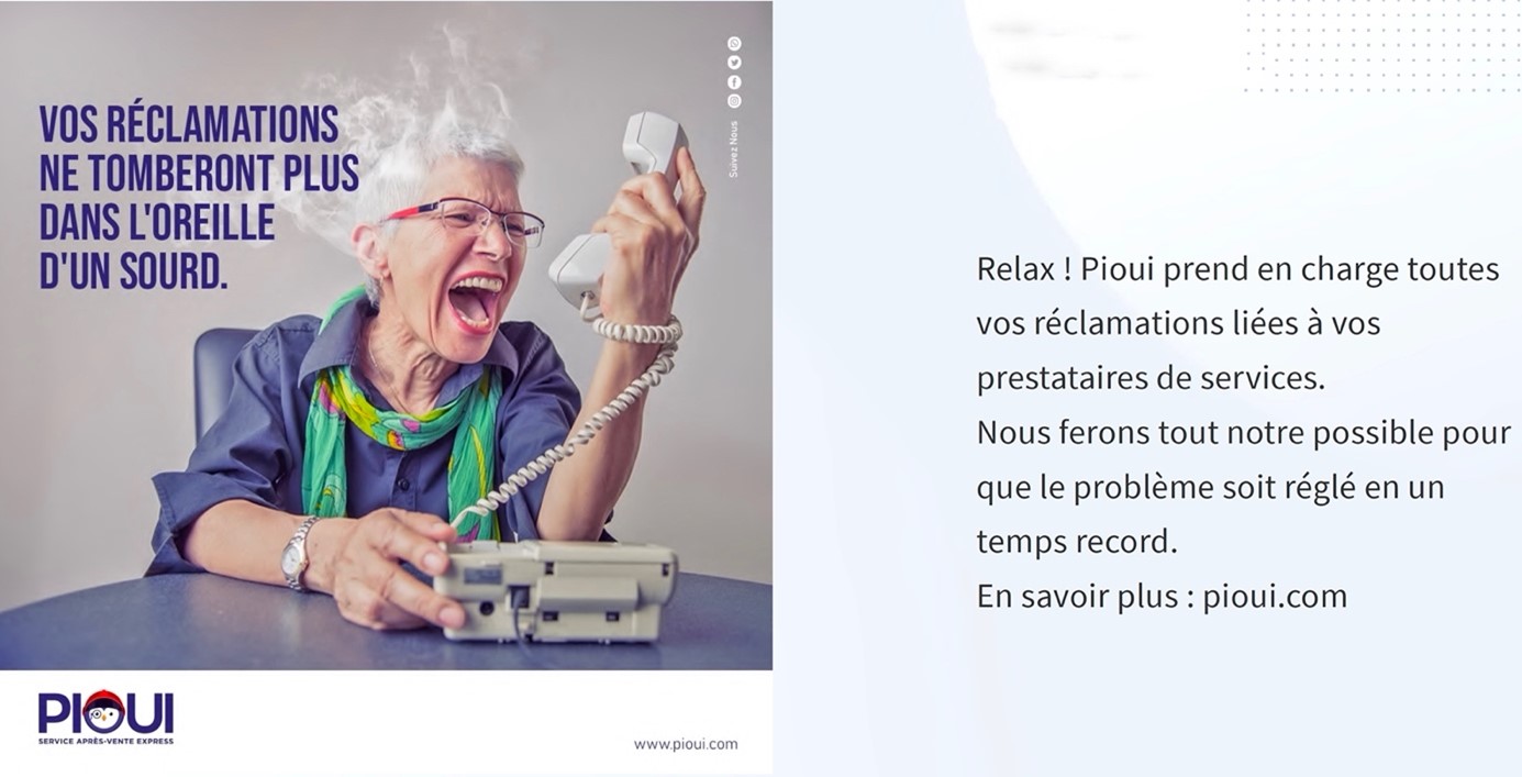 La solution s’appelle Pioui, le seul service gratuit SAV multimarques sur le marché. Le principe est simple : il suffit de télécharger une application novatrice et unique en France pour faire ses demandes de réclamation toutes marques confondues, gérer ses abonnements, renégocier ses factures et profiter de services à haute valeur ajoutée.