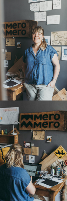 Originaire de Grenoble, Hélène Allera-Marie a 39 ans et vit à Annecy depuis 12 ans. Avant de lancer MeroMero, elle a travaillé pendant plus de 15 ans dans l’industrie des sports outdoor, travaillant pour des marques comme Patagonia, Rossignol et blurr, des agences, ou en freelance.