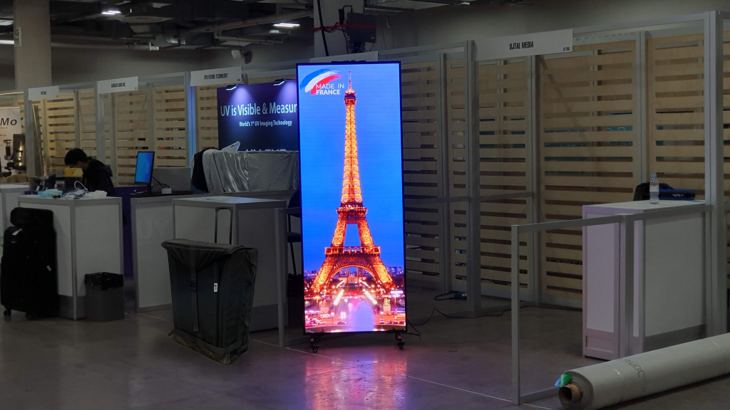 Pour aller plus loin, DJTAL MEDIA s’appuie alors sur un partenaire industriel pour standardiser la production de iBanr. L’écran version 5 a une résolution augmentée par 4 et l’iBanr devient le premier roll-up digital HD du monde avec écran d’une résolution de 2mm de pitch (écart entre chaque LED) contre 4mm auparavant pour la version 4.