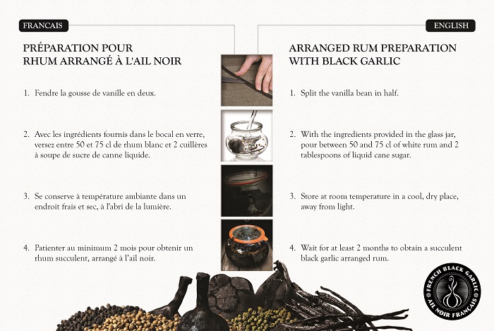 Elles vont donc pouvoir être utilisées pour donner naissance à la première création FRENCH BLACK GARLIC : un savoureux rhum arrangé à l’ail noir, une recette inédite et délicieuse à déguster lentement après 2 mois minimum de macération.