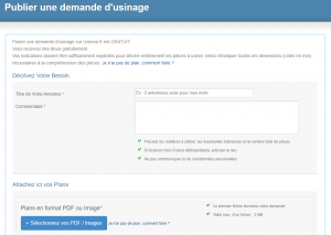 - L’internaute envoie sa demande d’usinage, en y joignant ses plans.