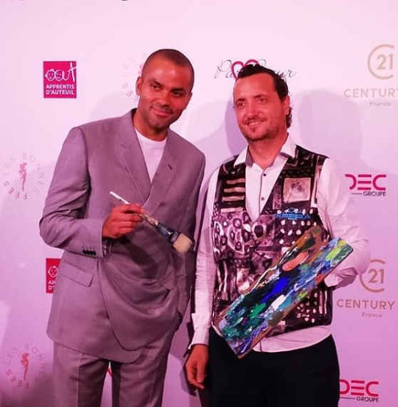 Il a également peint pour la soirée Gala de Tony Parker à Paris, pour le World Rugby Captain Dîner à Londres et à aussi réalisé une fresque murale à côté de Toulon sur le mur d’un stade en hommage à Christophe Dominici.