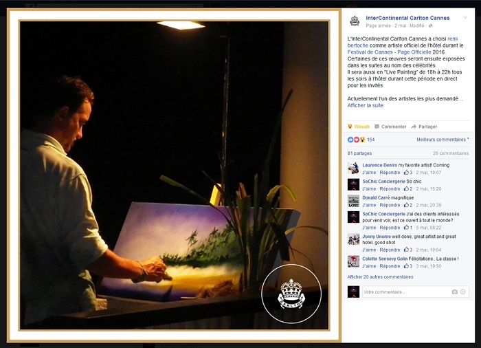 Une démarche qui séduit : Rémi Bertoche a été le peintre officiel du Prince Albert II de Monaco, du Carlton durant le Festival du Film de Cannes, du Roi de Bahrain et du Prince du Maroc.