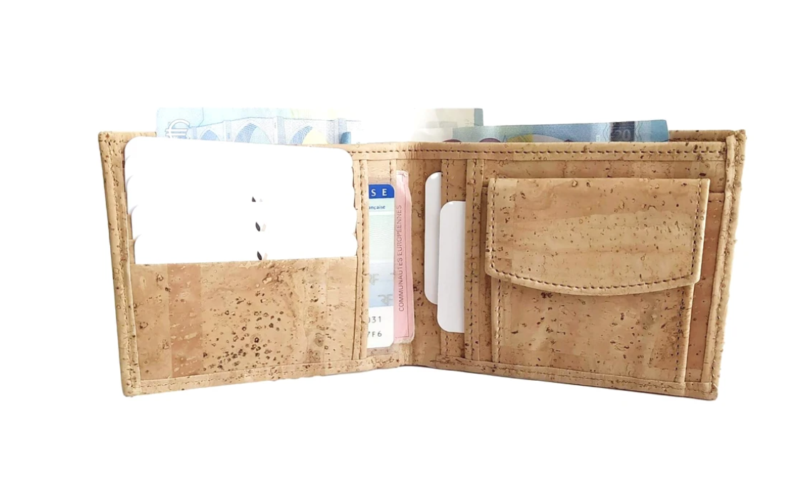 Son produit phare, le portefeuille en liège, offre une alternative écoresponsable au cuir animal. Léger, doux, et élégant, le liège est naturellement imperméable, grâce à la subérine qu’il contient. Transformé en tissu, il est aussi résistant et souple que le cuir. Sa texture chaleureuse est à mi-chemin entre le cuir et le daim.