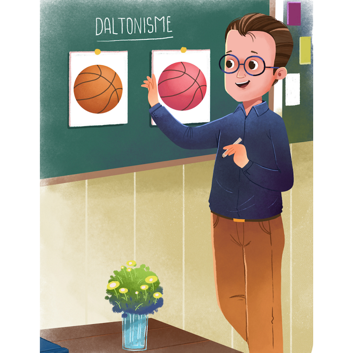 - Particularité : atteint d’une anomalie de perception des couleurs.