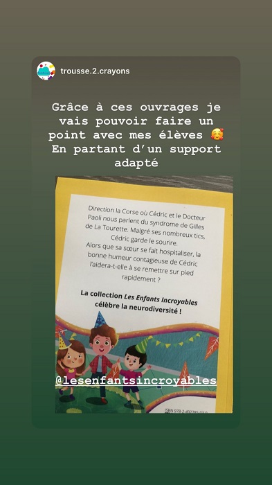 Or, la lecture, même quand elle aborde des sujets “sérieux”, doit toujours rester un plaisir ! C’est pour cela que Fanny Chapel a créé la collection “Les Enfants Incroyables” : digestes et légers, mais 100 % instructifs, ils sont accessibles à tous les loulous, qu’ils présentent ou non des troubles.
