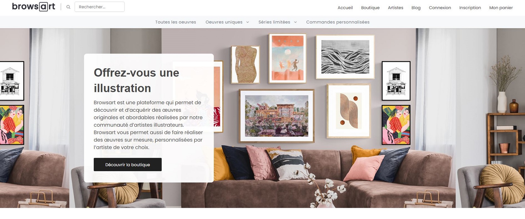 Browsart est une plateforme qui permet de découvrir et d’acquérir des œuvres originales et abordables réalisées par une communauté d’artistes illustrateurs. Elle permet aussi de faire réaliser des œuvres sur-mesure, personnalisées par l’artiste de son choix.