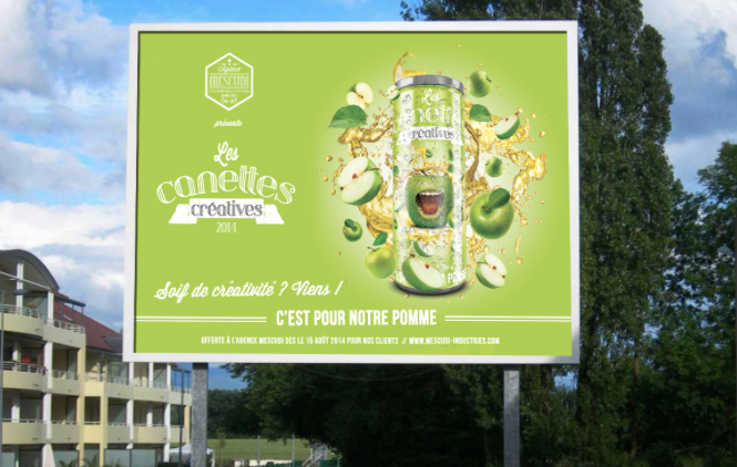 En attendant, suite à un accord conclu avec un nouveau fournisseur, l’agence Mescudi accueille ses clients avec ses “canettes créatives”, des rafraîchissements la pomme et au slogan bien trempé : « Soif de créativité ? C’est pour notre pomme ! ».