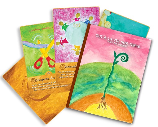 Brigitte Denis : “”Oui à la vie sur Terre” est plus qu’un livre de plus à lire sur la gestation et la grossesse, ce sont plus que de magnifiques informations, c’est aussi un soutien de croissance personnelle et professionnelle. En ce sens, j’ai trouvé les cartes qui accompagnent le livre magnifiques et inspirantes. Je les utilise avec bonheur, personnellement pour moi-même comme support à une question, et aussi professionnellement, dans mes stages “J’arrive !” et “La Maisonnée”.”