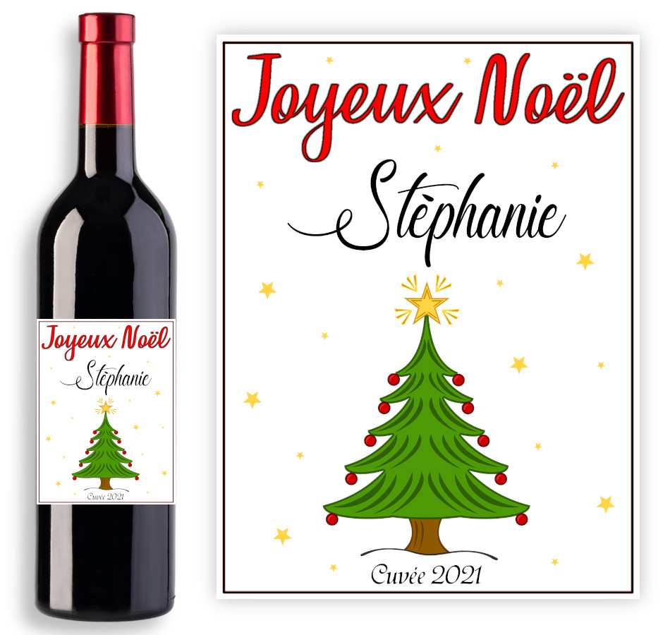 Étiquette bouteille de vin personnalisable avec prénom pour Noël