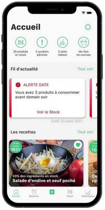 Concrètement, après une journée d’activité ou de travail, il suffit d’ouvrir l’app pour voir en un coup d’œil les meilleures recettes, en fonction de contenu de son frigo et de ses placards, qui permettront de ne pas gâcher ses aliments les plus proches de la date de péremption.