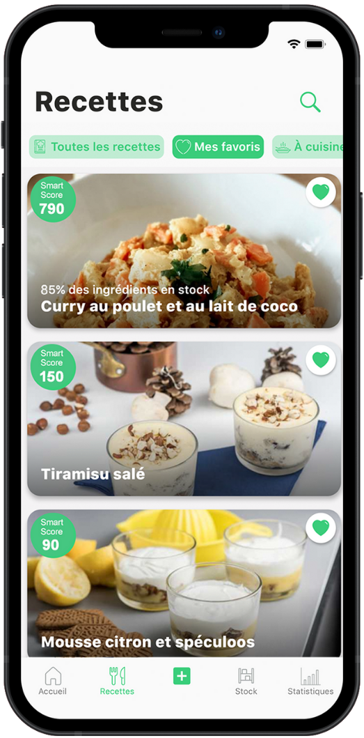 L’ingrédient magique : grâce au SmartScore anti-gaspi exclusif WEASYN, les inspirations de recettes sont poussées en fonction des ingrédients du stock, des priorités de dates de consommation et du nombre de personnes dans la tribu. Plus le SmartScore est élevé, plus la recette est adaptée pour ne pas gâcher.