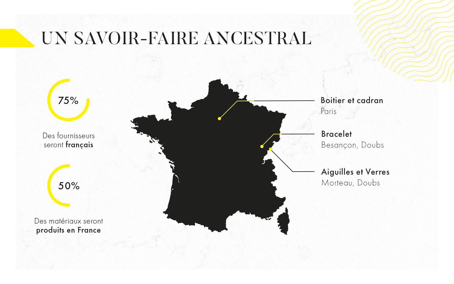 Les aiguilles sont conçues et fabriquées dans le berceau de l’horlogerie française, à Morteau, dans le Haut-Doubs. Un savoir-faire qui perdure depuis plus de 100 ans et qui permettra d’offrir une qualité d’aiguilles incomparable.