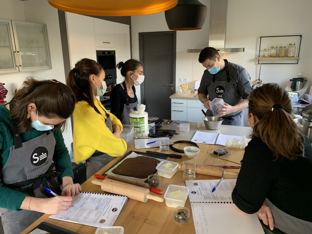 Le chef pâtissier se déplace avec tous les ingrédients pesés afin que les élèves se consacrent uniquement sur l’essentiel : faire le plein de connaissance.