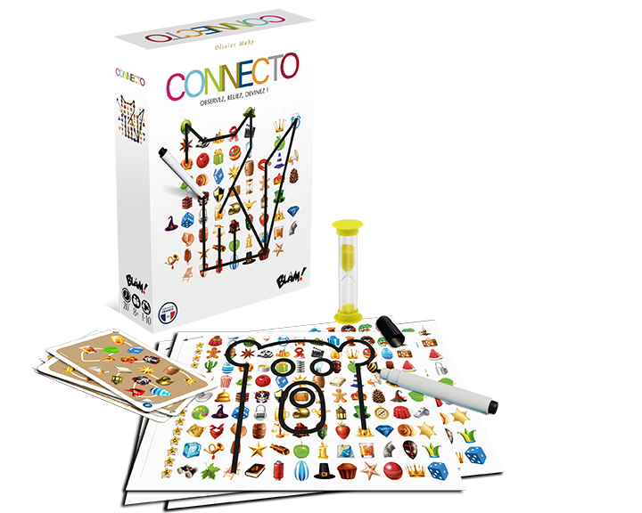Le principe de Connecto est simple : chaque joueur doit relier des points entre eux sur son plateau, pour faire apparaitre un objet. Pour gagner, il doit être le premier à deviner ce qu’il dessine.
