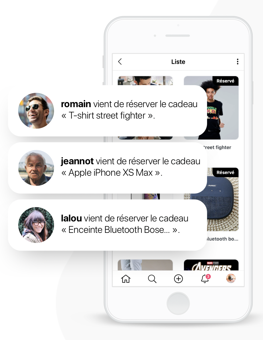 Dans ce cas, le propriétaire de la liste sera averti qu’un cadeau est réservé, mais ne saura pas par qui. Aucun doublon n’est possible, parce que tous les participants sont notifiés dès qu’un cadeau est réservé.