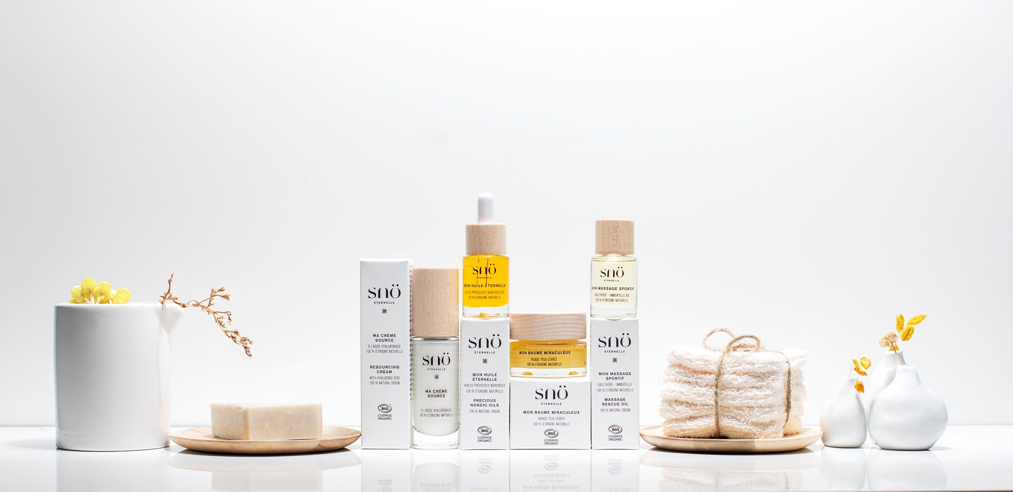 C’est le cas de la marque SNÖ Eternelle qui propose à la vente, sur son e-shop et chez des revendeurs partenaires, des produits cosmétiques 100% naturels et certifiés BIO Cosmos Organic. Soins visage, huiles, baumes et savons sont conçus et fabriqués en France dans de beaux flacons écoresponsables en verre et bois à recycler.
