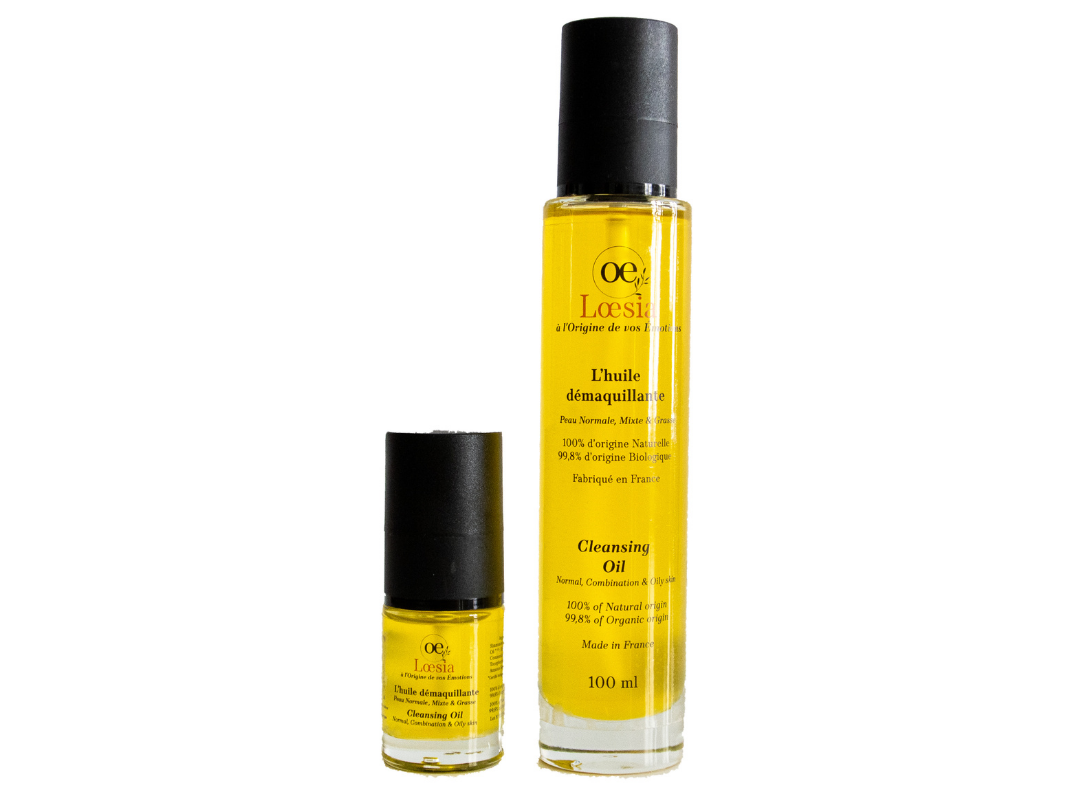 Sortie en juin 2021, l’huile démaquillante Loesia est 100% naturelle, 99,8 % biologique et hydratante. Elle est proposée en deux versions :
